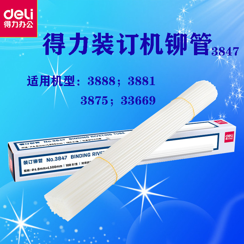 DELI binding tube riveting tube 3888 small binding machine binding tube Electric binding machine 3847 riveting tube 4 8mm financial certificate binding nylon tube Hot melt tube hose original accessories