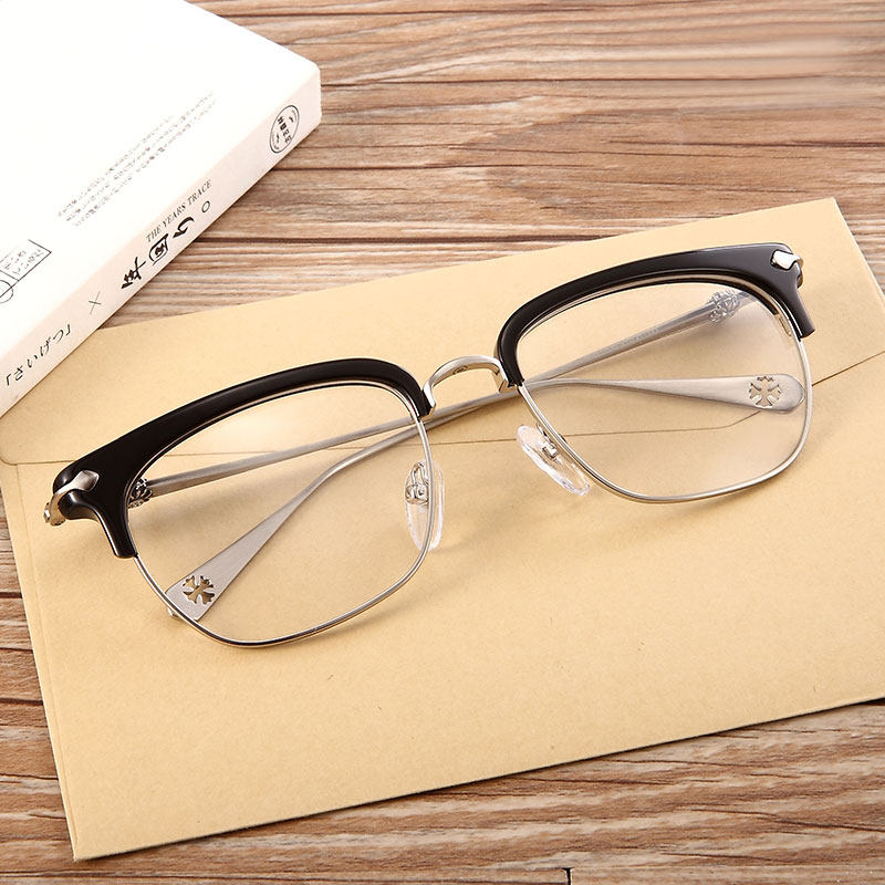 Xue Zhiqian with the same glasses pure titanium flat retro half-frame glasses frame silver wind Chrome with myopia glasses men