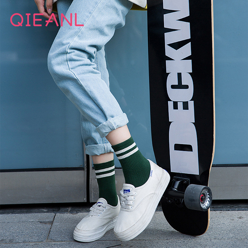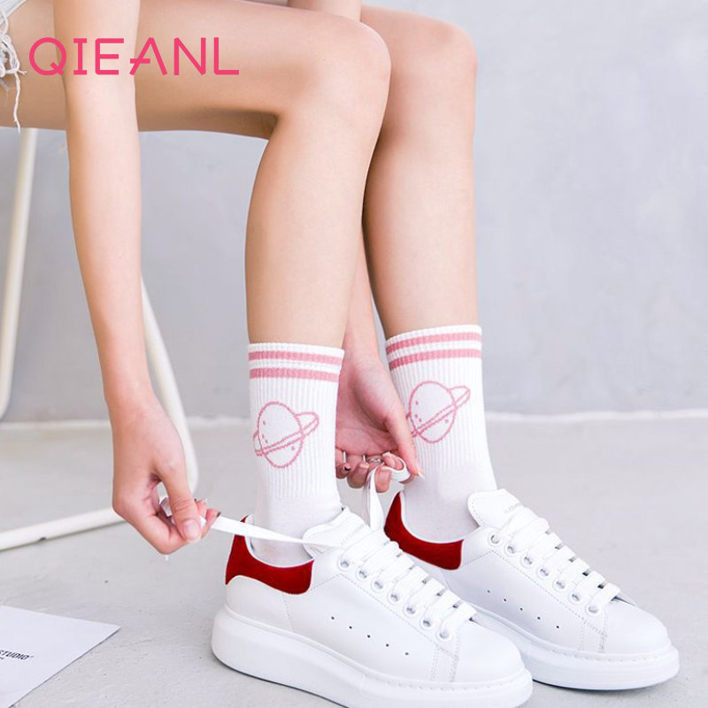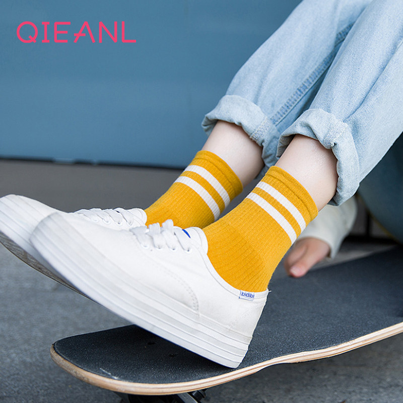 Spring and summer socks women middle tube cotton solid color sports socks female students short socks shallow mouth Korea lovely cartoon socks