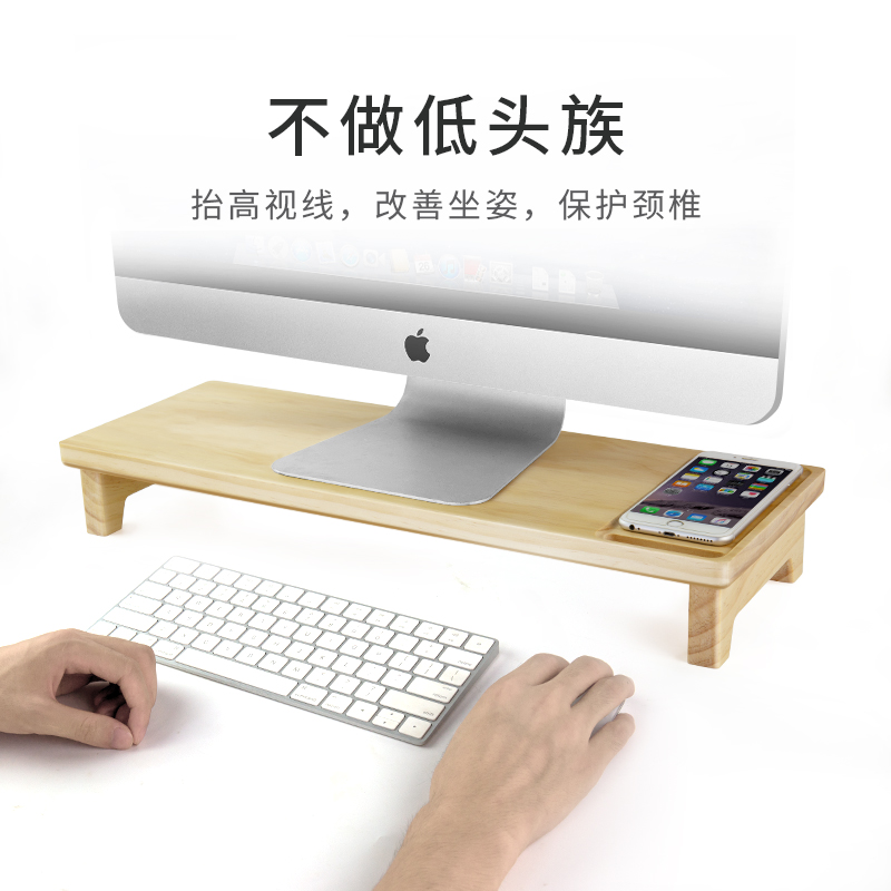 Computer screen screen booster Solid wood base Office desktop keyboard shelf Storage bracket raise