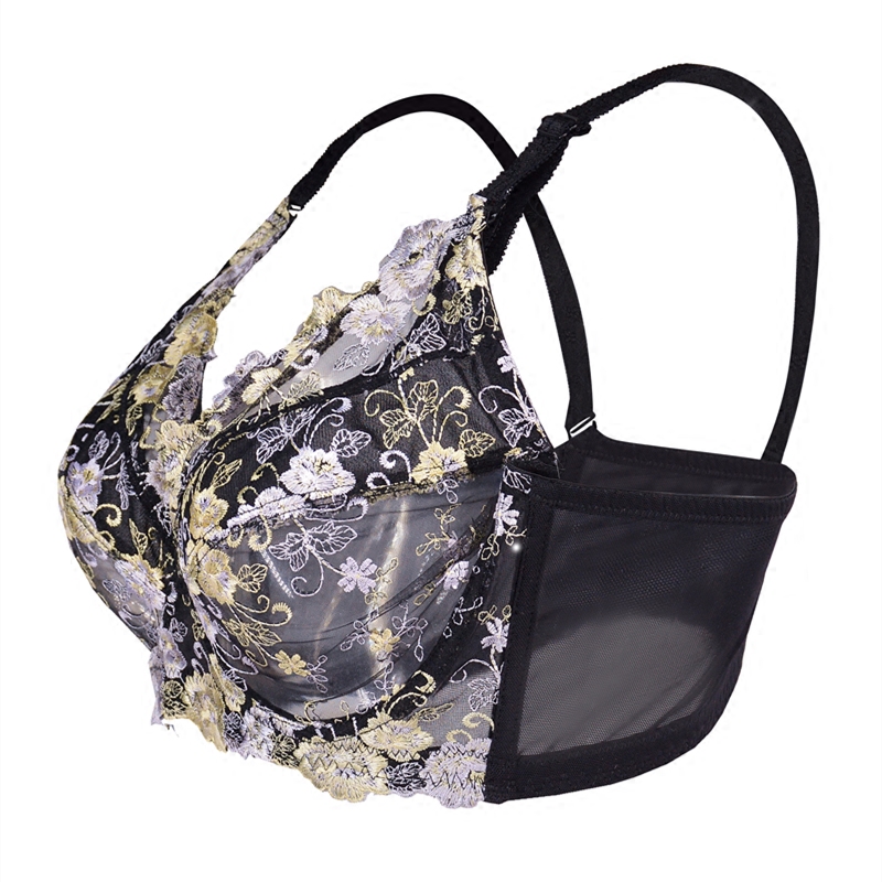 Ultra thin bra large breasts with small thin and breathable underwear Fat mm large size full cups No sponge sexy poly-woo bra