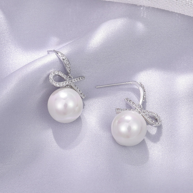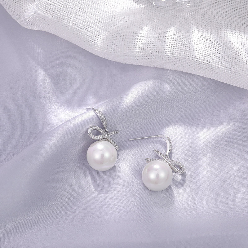 Elegant Ri Personality Pearl Inlaid Diamond Earrings Woman Temperament South Korea Fashion 100 Hitch Silver Needle Ear-Pin Jewellery Accessories