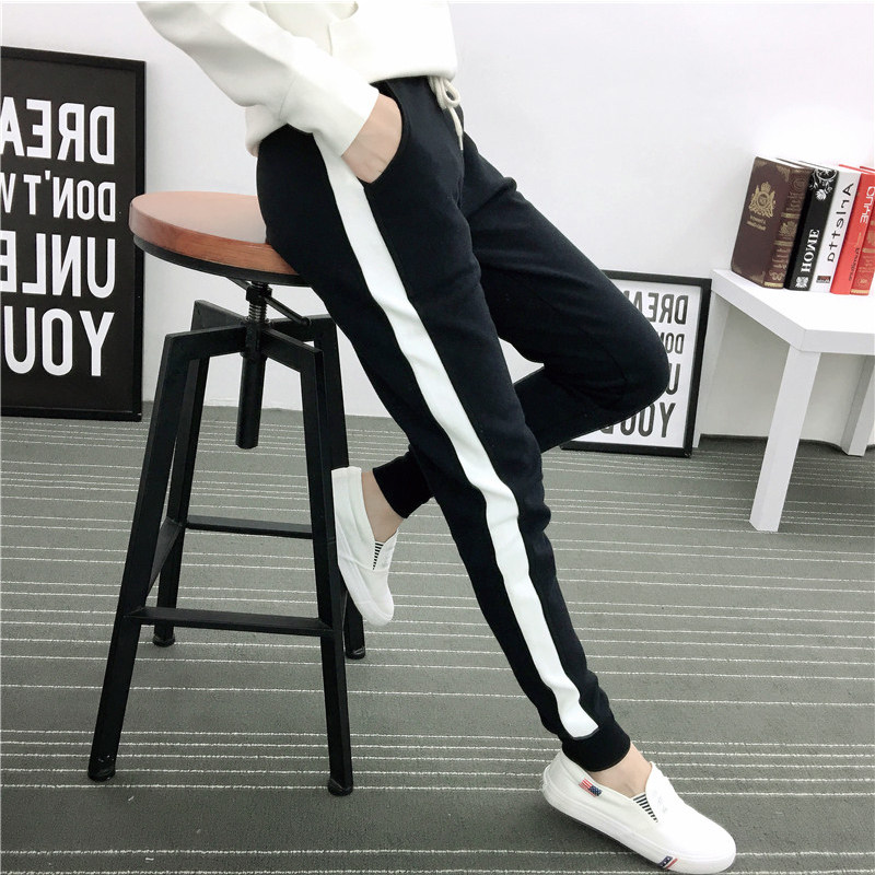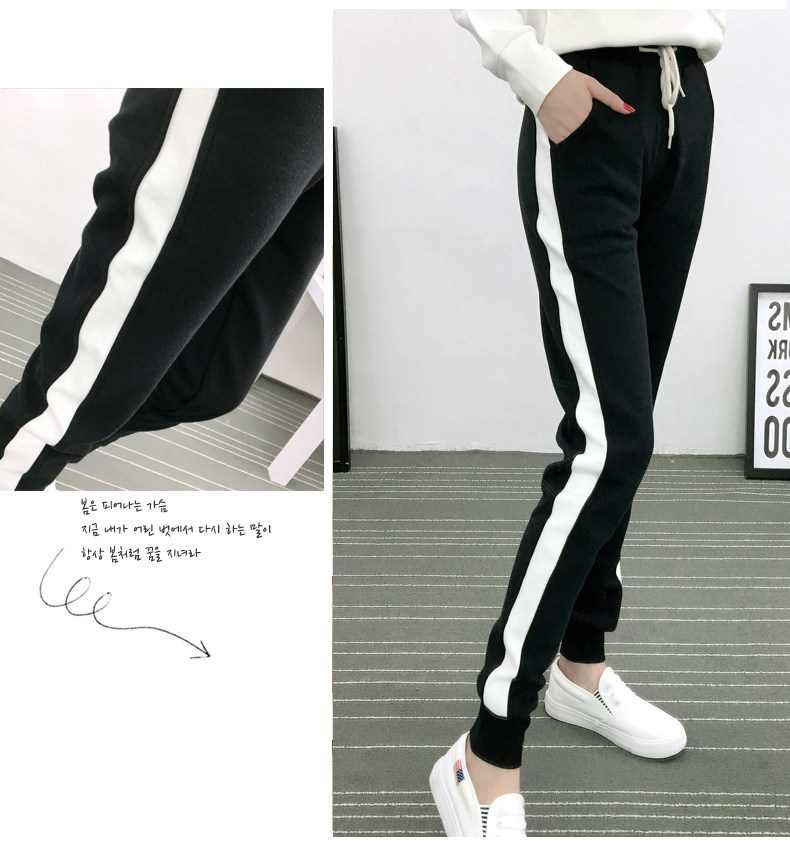 Large size women's trousers autumn new side striped feet harem pants women's fat mm loose feet sports casual trousers