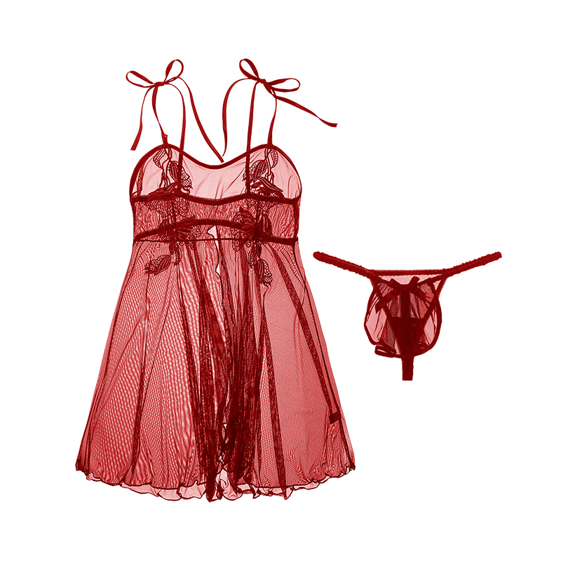 No one can stop the crazy sexy pajamas Women embroidery transparent seduction mesh hip-hop sling night dress