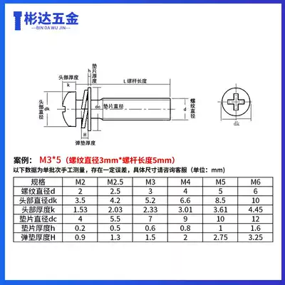 Nickel-plated cross round head three combination padded screw pan head comes with flat elastic pad bolt combination screw M2-M6