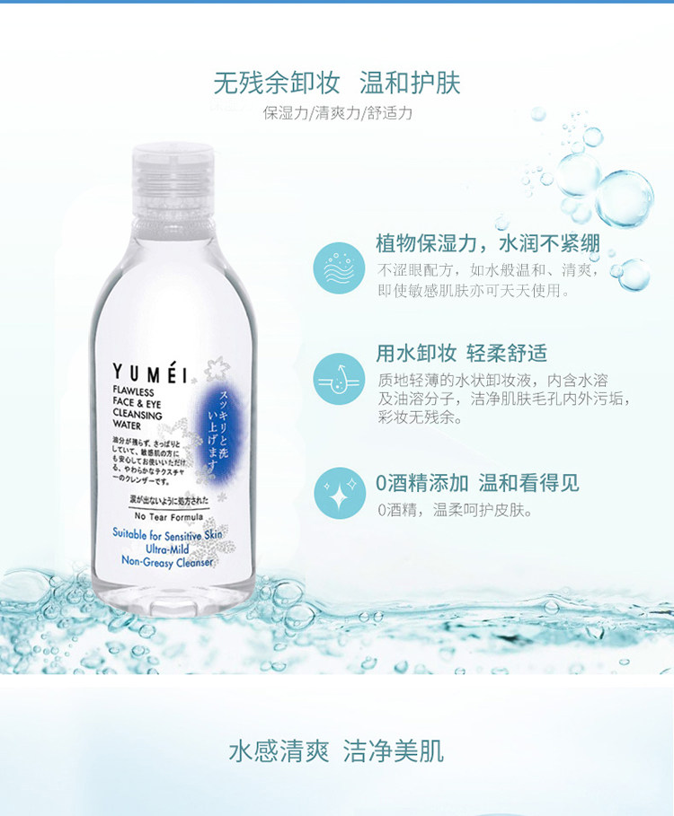 Korea YUMEI makeup remover for women's face Gentle deep cleansing without irritation eyes and face Three-in-one refreshing oil control