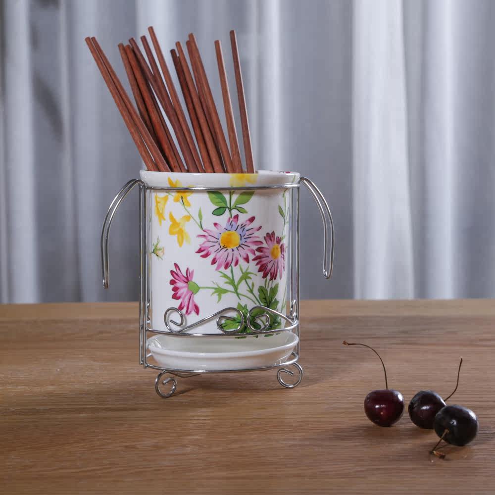 The sea of flowers household bone china drain chopsticks tube Kitchen utensils storage mildew creative ceramic daily use