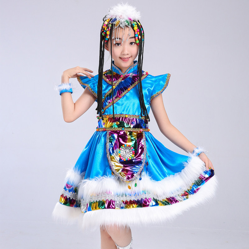 New children's Tibetan costumes girls short-sleeved children's Xinjiang dance costumes minority costumes girls