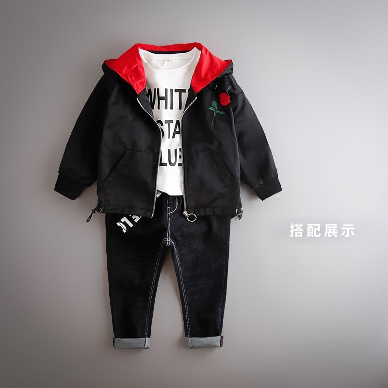 Boys Jacket Spring and Autumn New Korean Version Casual Autumn Children's Clothing Fashion Middle-aged Boys Children's Black Jacket