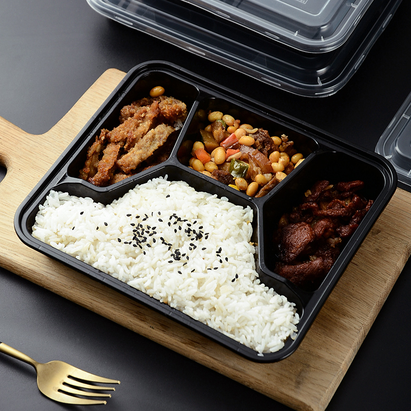 Transparent square three-grid dining box 150 sets of black square three-grid dining case 150 sets of transparent square four-grid dining case 150 sets of black square four-grid dining case 150 sets of transparent square five-grid dining case 150 sets
