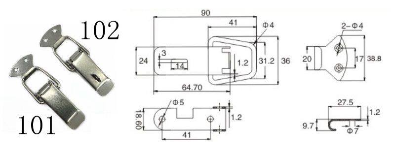 YJ101 Iron Hasp YJ102 Nickel-plated Flat Mouth Luggage Lock Buckle Tool Box Lock