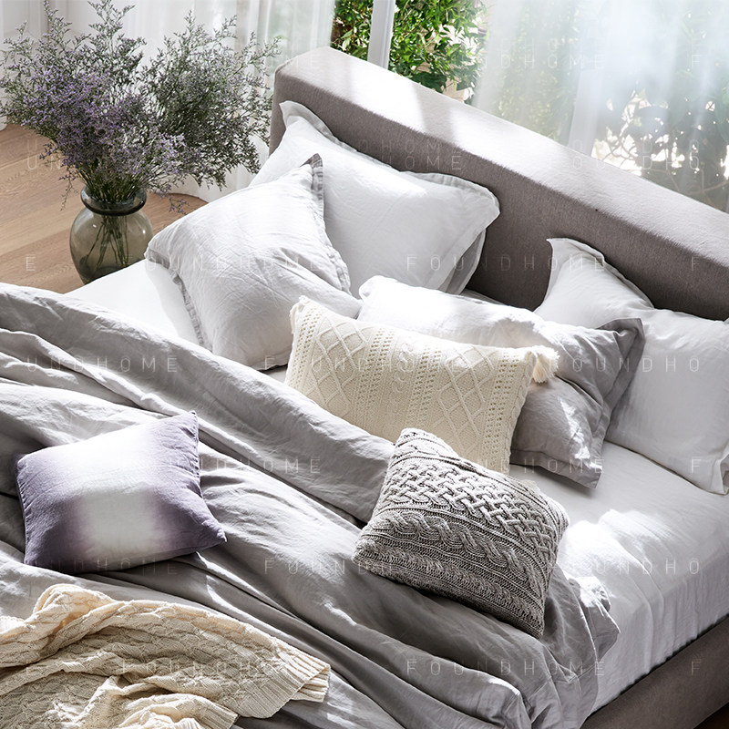 foundhome 100% pure linen four pieces of water washed natural bed goods breathable quilt cover covered pillowcase bed linen