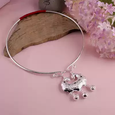Handmade sterling silver collar female 999 fashion simple short clavicle collar baby collar Long Life Lock high end customization