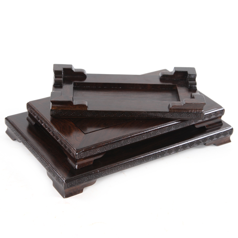 Red wood carving crafts furniture base black sandal wood square floor pot scenic stone base solid wooden cubicle