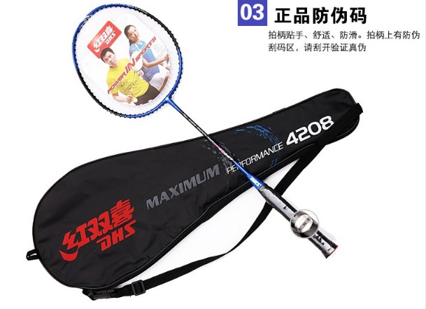 Anti-counterfeiting red double happiness badminton racket 4208 aluminum alloy carbon rod one badminton racket