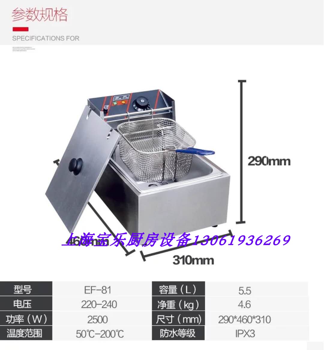 Guangdong EF-81 electric fryer Commercial 6-liter electric fryer Desktop single-cylinder electric fryer fryer French machine