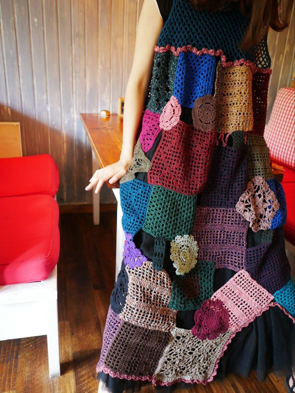 A thousand years at a glance~original literary fan retro pure handmade hook flower hollow spring and autumn mix and match piece dress