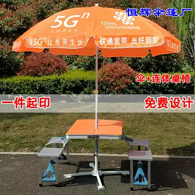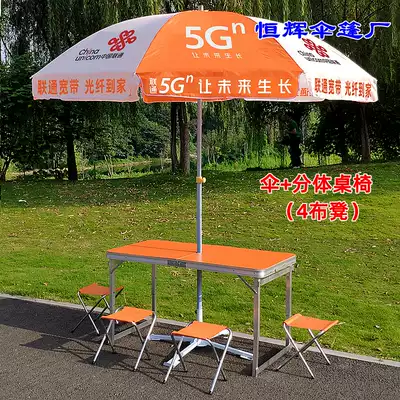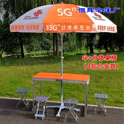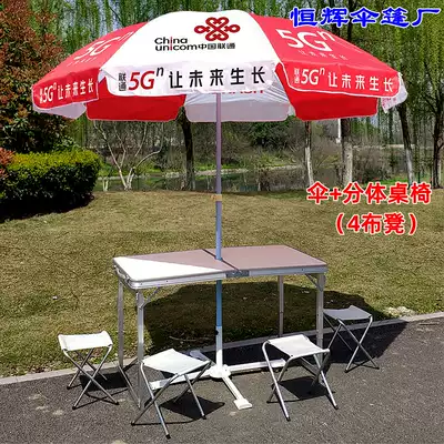 China Unicom broadband 5G advertising parasol outdoor promotion push sunshade setting umbrella folding table and chair set