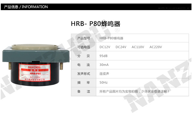 Nanzhou high-quality buzzer HRB-P80 small alarm AC220V DC24V 12V concealed