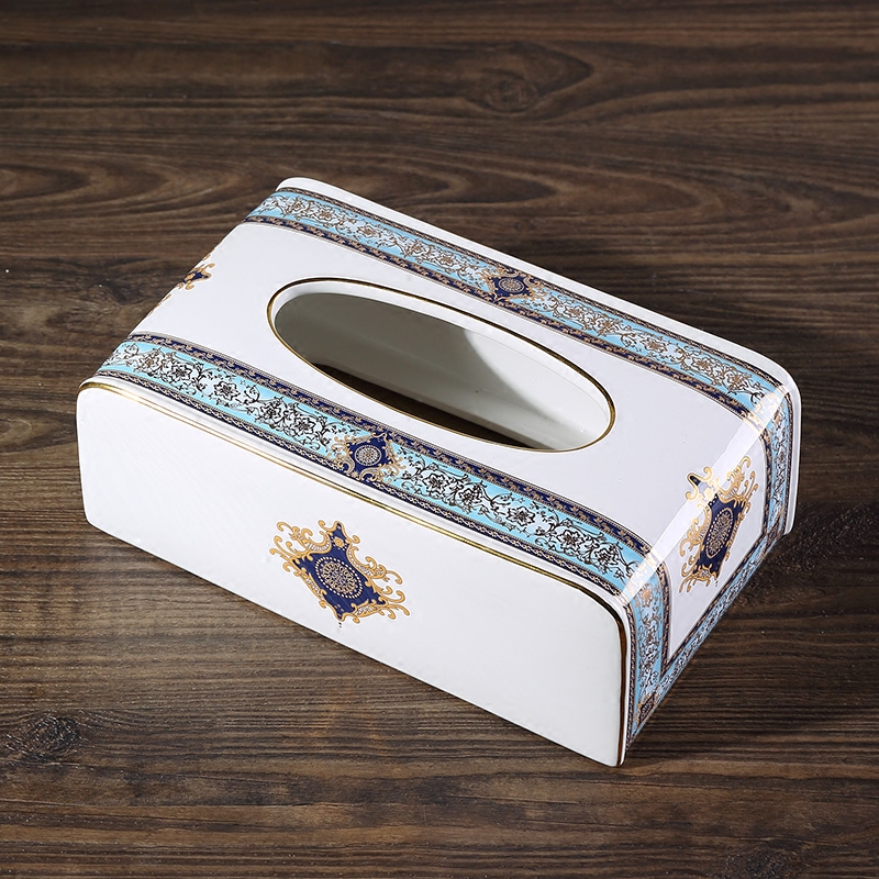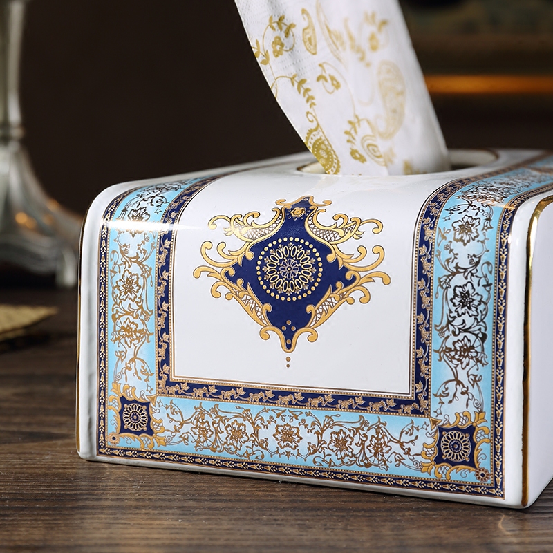 Luxury European ceramic tissue box household living room accessories for high-grade retro toilet box tea decorations