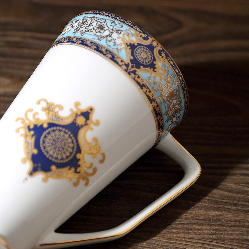 Retro Bone Porcelain Mark Cup Personality Large Capacity Water Cup Eurostyle Coffee Cup Milk Cup With Spoon
