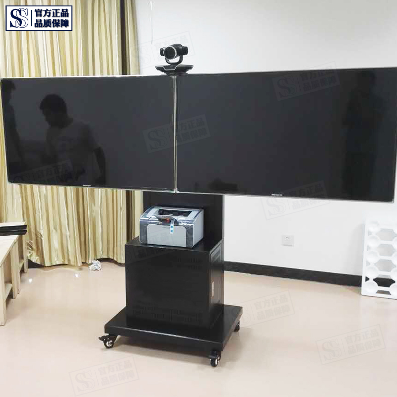 Dual-screen TV Mobile bracket Double liquid crystal display bracket video conferencing mobile cart vertical hanging rack floor-Taobao