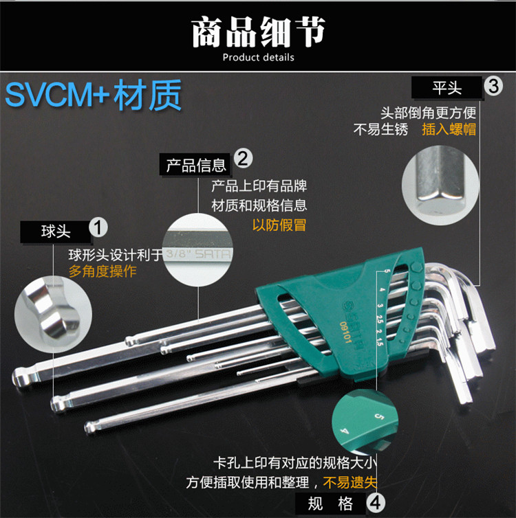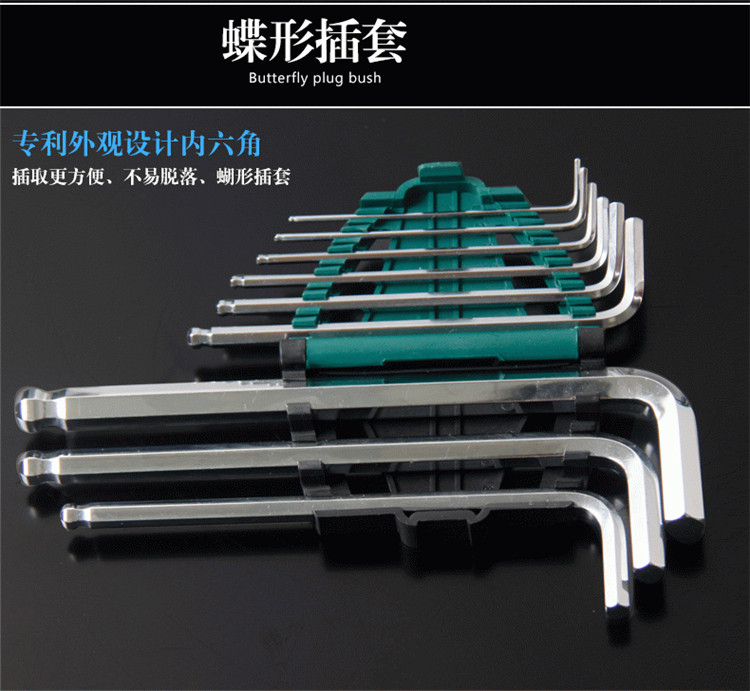 Shida tools metric inner hexagonal wrench set with extra long ball head flat head inner hexagonal wrench
