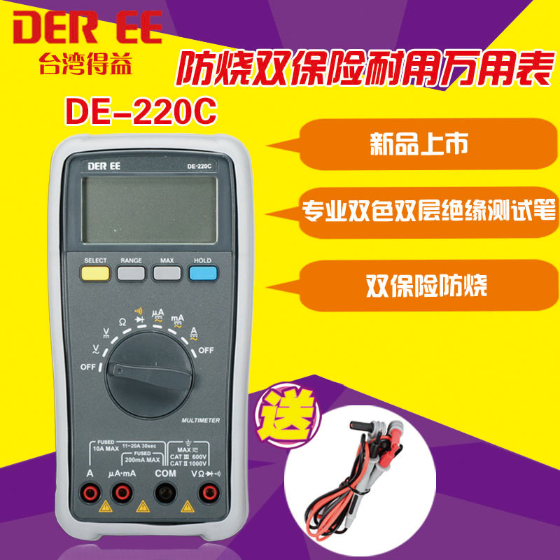 Taiwan benefit DE-220 DE-220C 222C digital multimeter anti-burning universal meter high-precision pocket