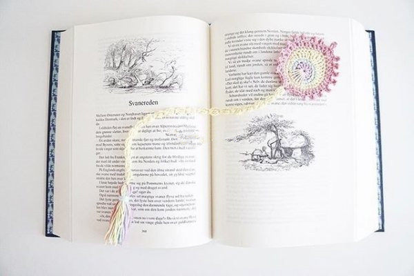 Original crochet bookmark Chinoiserie Peacock Plume bookmark Lace thread finished forest pink bookmark full