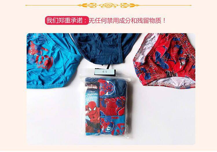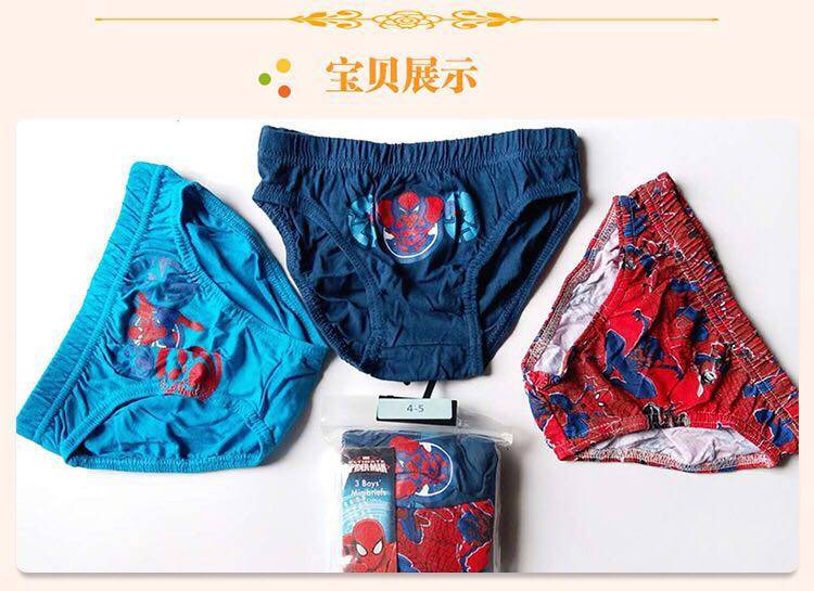 3 pieces of 15 yuan foreign trade brand Spiderman cartoon printing cotton boy's briefs