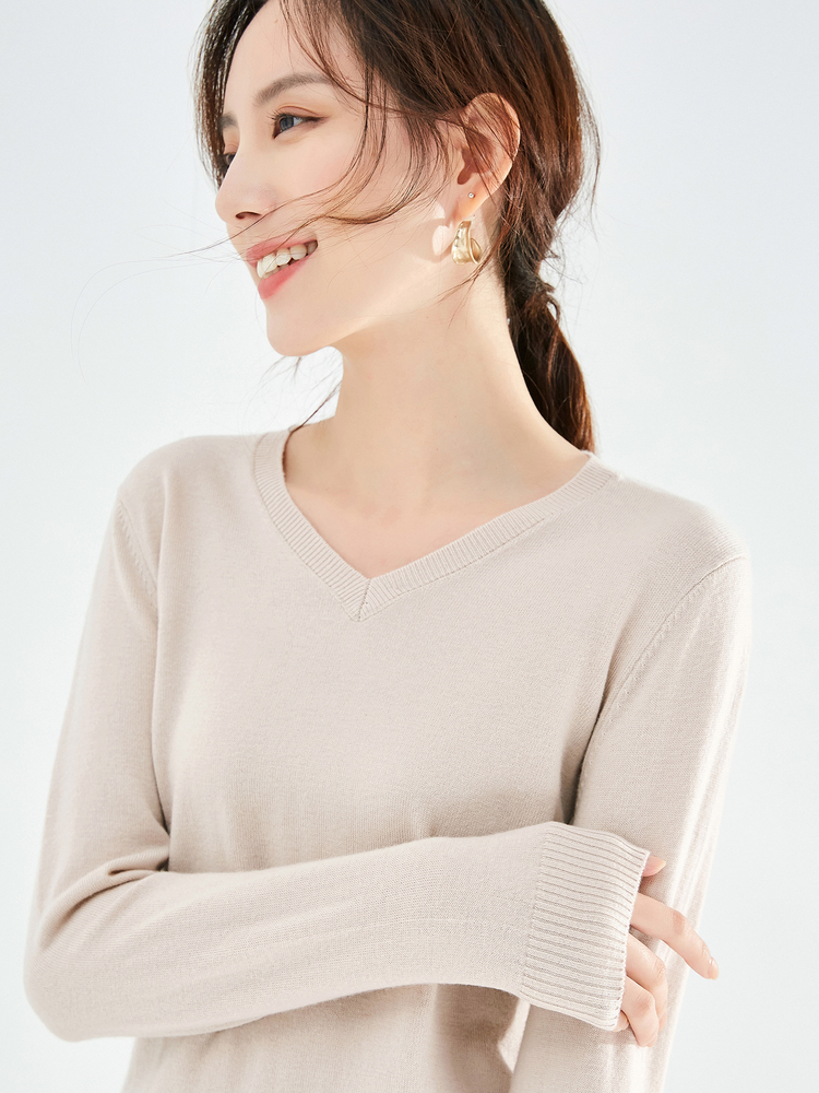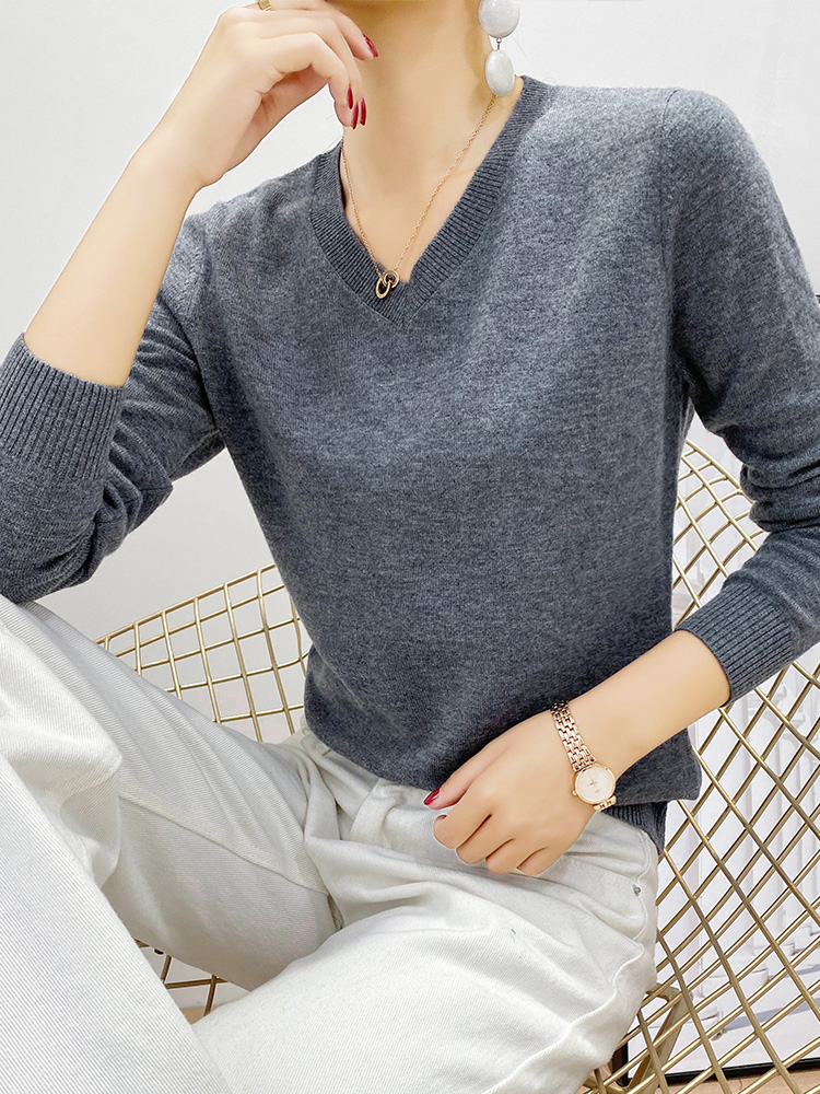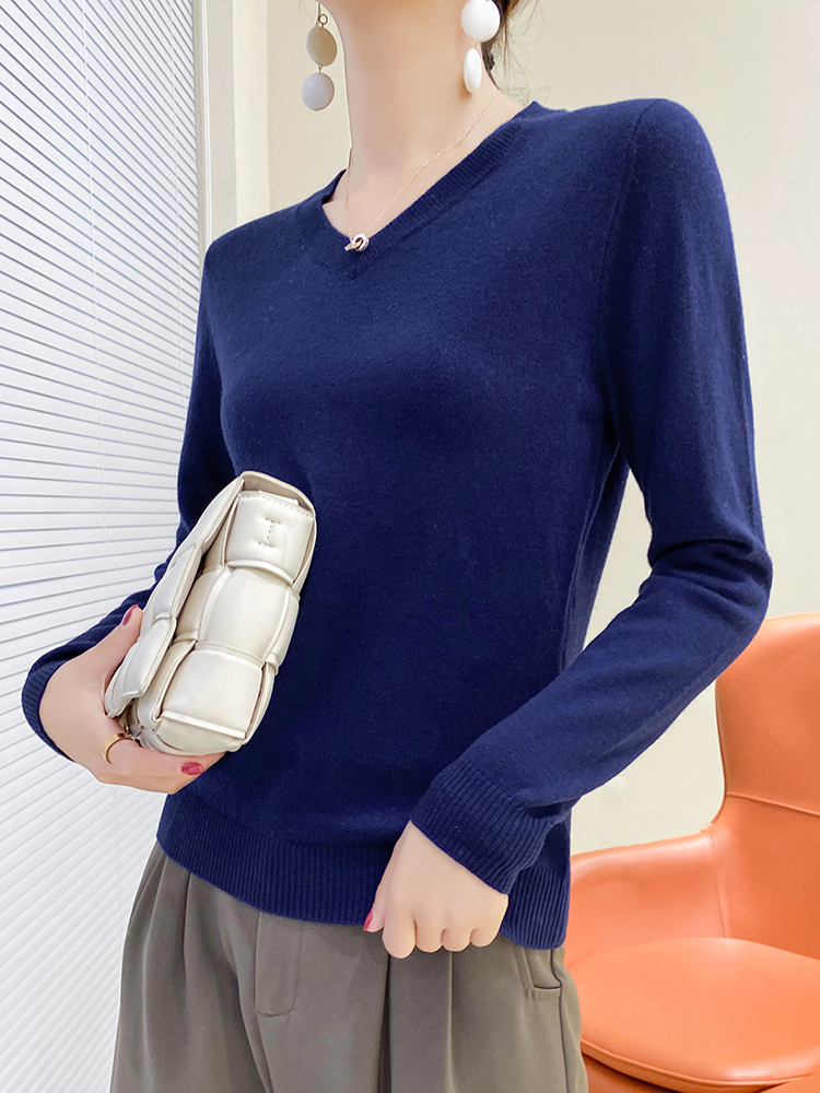 Hengyuanxiang woolen sweater women's 100 pure wool 2022 spring new V-neck knitted bottoming shirt slim women's sweater
