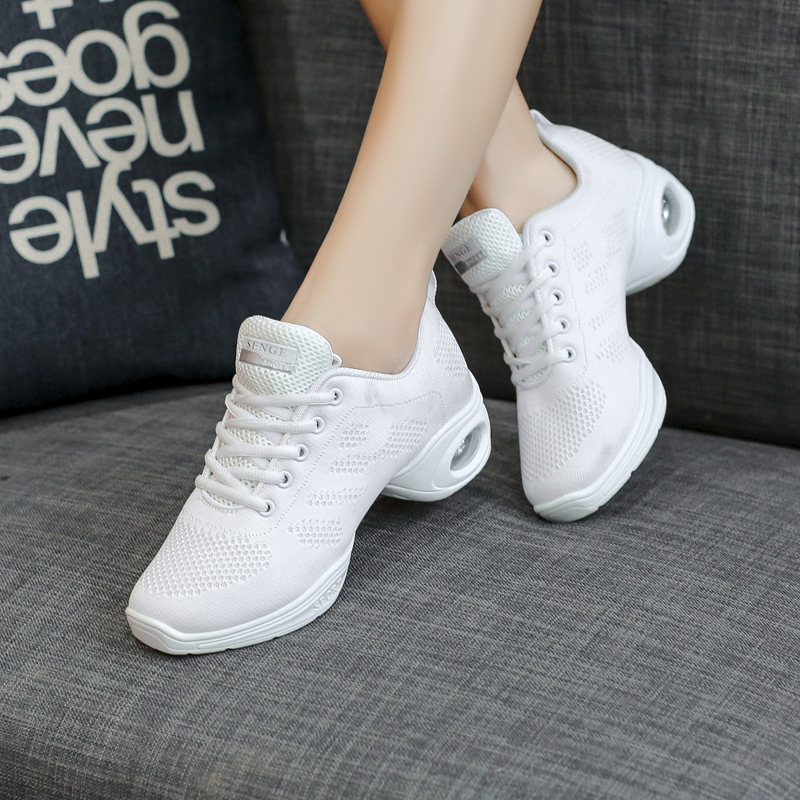 Sen Song New Dance Shoes Women Adults Square Dance With Soft Underfoot Sailors Dancing Fitness Shoes White Summer Net Face