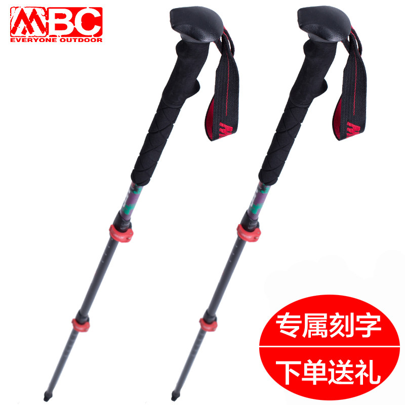 MBC Carbon Fiber Hiking Pole Carbon UltraLight Ultra Short Telescopic Cane Three Sections Crutches Outdoor Hiking Climbing Equipment
