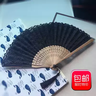 Lace dance fan Ladies classical folding fan Performance silk fan Japanese style folding fan Hollow silk gift fan