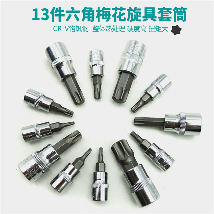Hexagonal plum socket wrench inner hexagonal batch head star screwdriver screwdriver tool T-type screw with 6-angle rice mouth