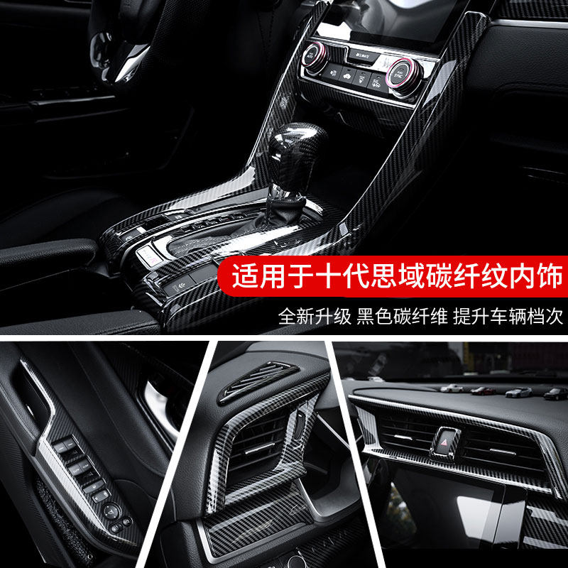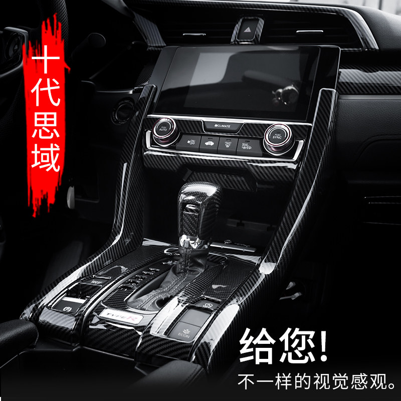 Suitable for 16-20 new 10th generation Civic carbon fiber pattern control panel gear box affixed to the armrest interior strip modification