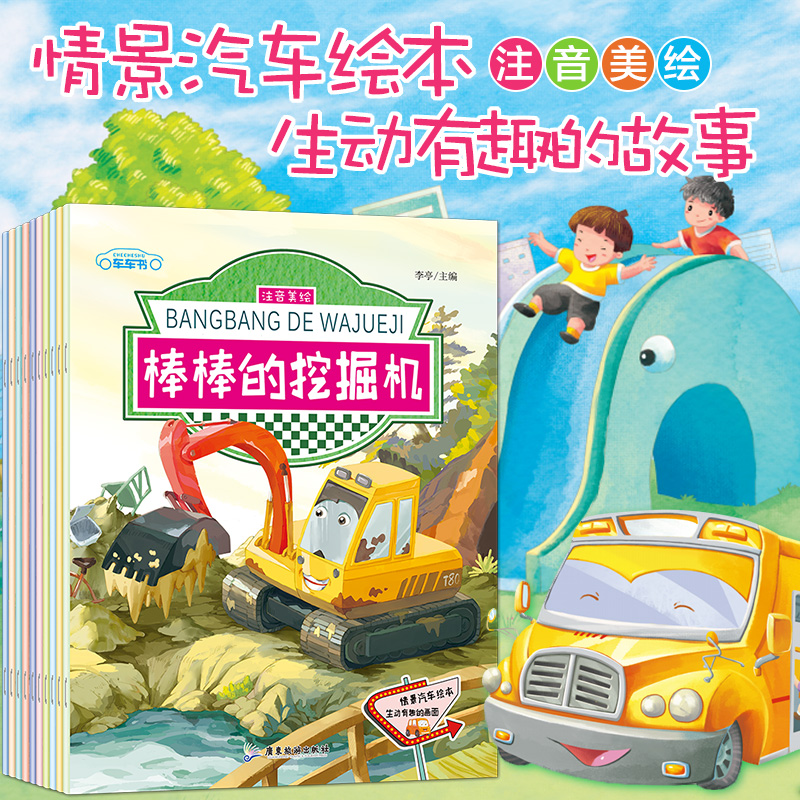 Scenario car picture book full set of 10 volumes, phonetic beauty painting vivid and interesting story book ambulance thank you fire truck good car car cognition big picture book