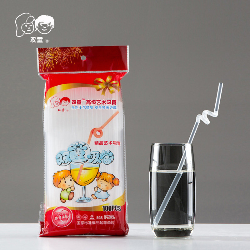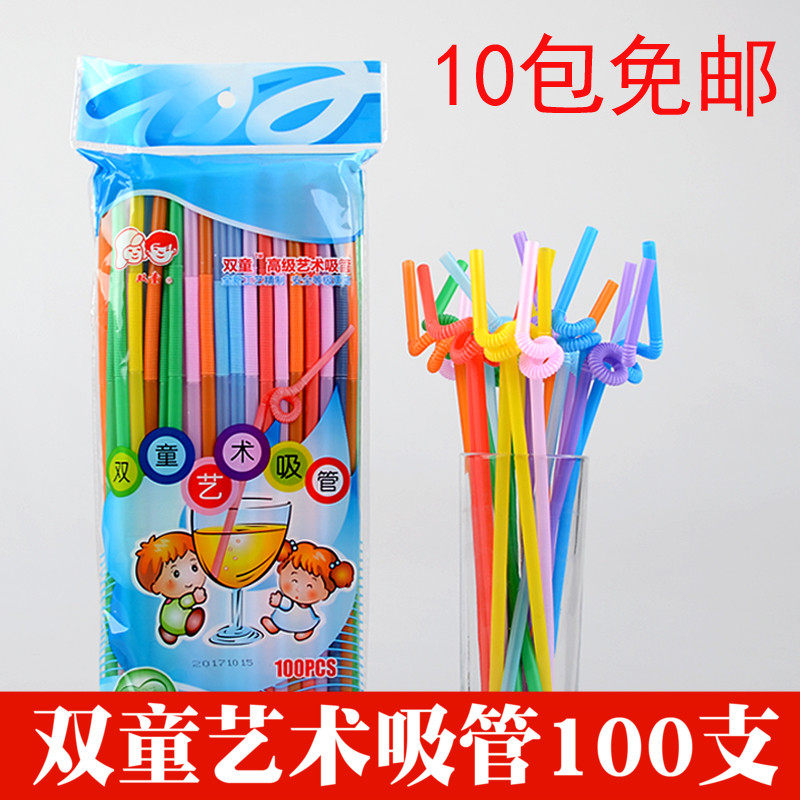 Whole Box Double Tong High Quality Art Straw Color Transparent Bendable Drink Juice Milk Tea Material Plastic Disposable