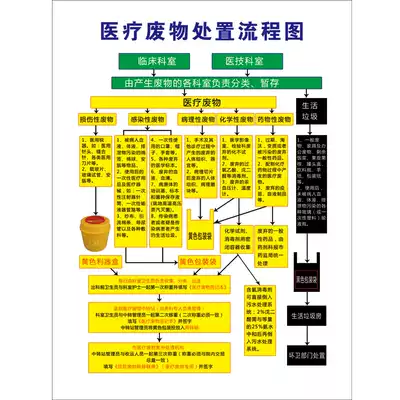 Medical waste safety disposal flow chart wall chart posters hospital regulations system brand custom health center poster