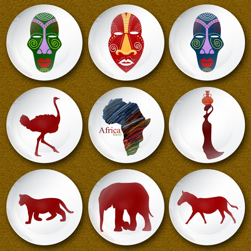 Beautiful Africa Painted Ceramic Dish Individuality Shop Home Creative Decorations Background Wall Decoration Dishes Hem