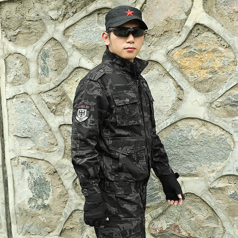 Autumn and winter thickened black eagle camouflage wear-resistant suit Men's and women's tooling Labor protection clothing Tactical clothing Security wear-resistant overalls