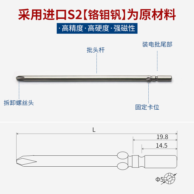 801 electric screwdriver head 4C electric screwdriver screwdriver head 5MM lengthened 100 120 150 200mm cross bit head