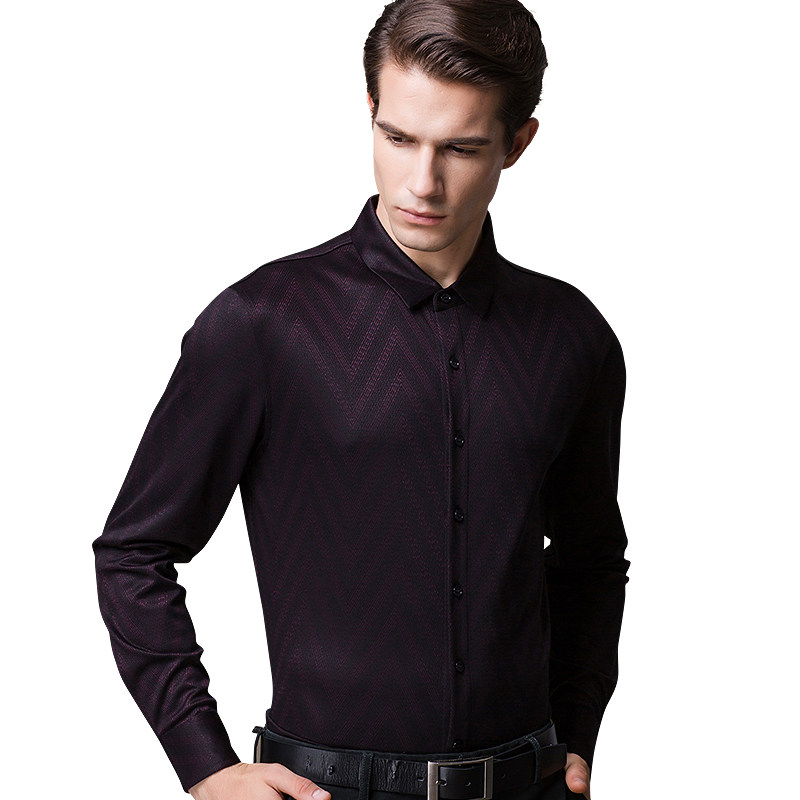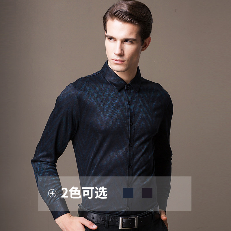 Wool mulberry silk shirt Men's long-sleeved Tencel business casual men's shirt Middle-aged printed top clothing spring and autumn