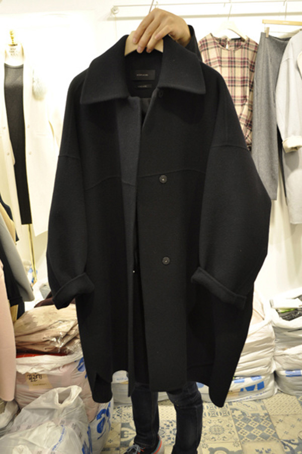 Dongdaemun Korean version of black woolen coat women's 2021 winter new loose cocoon-shaped mid-length woolen coat