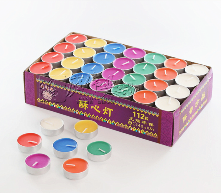 Colorful butter lamp plum blossom candle plastic shell aluminum shell 28 capsules 4 hours seven colors for Buddha lamp lotus cup Changming lamp