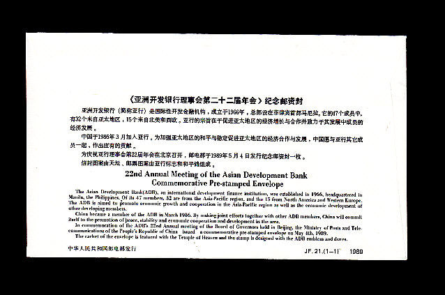 JF21 Annual Meeting 22nd the 22nd Annual Meeting of the Asian Development Bank Commemorates the Postage Envelope