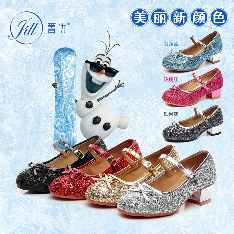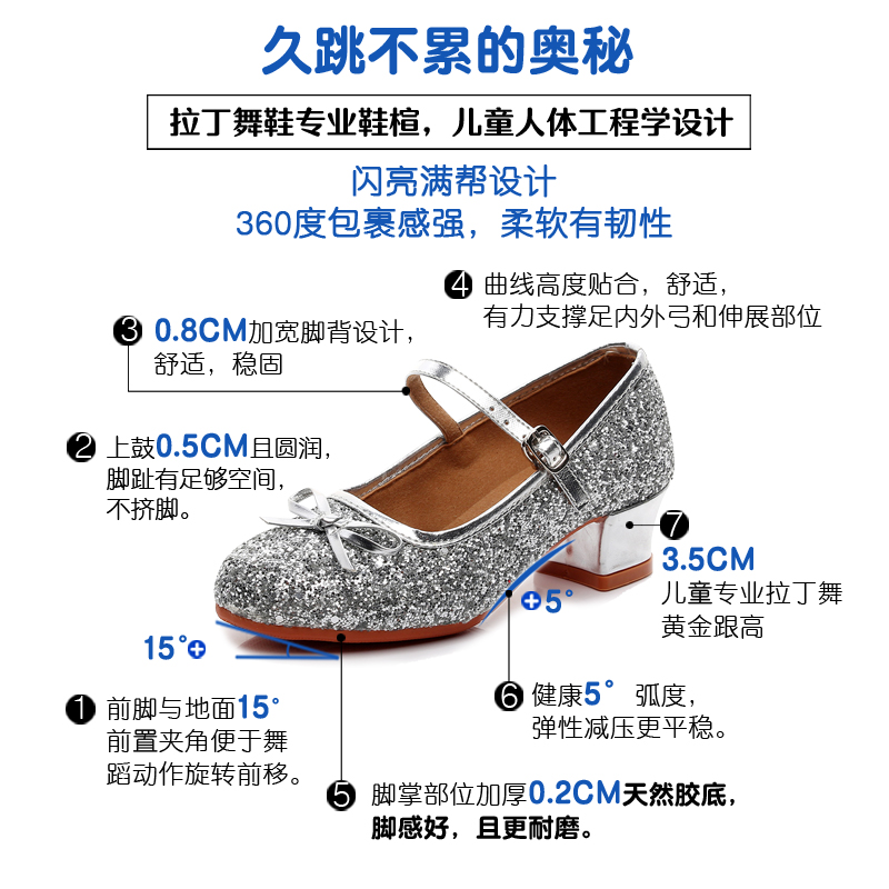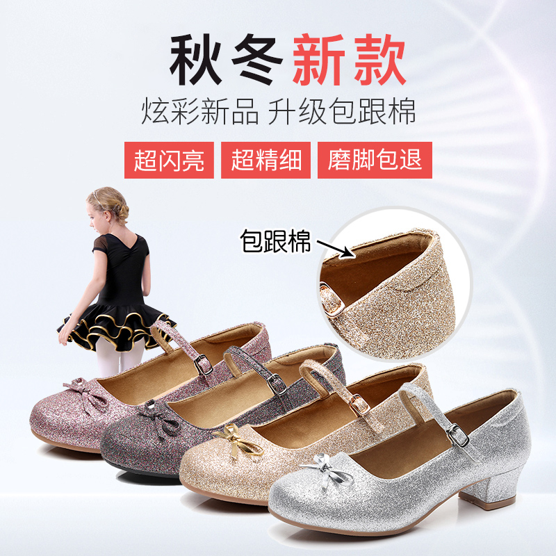 Princess Jing Aisha Children's Latin dance shoes girl dancing sparkling crystal shows medium and low flat heel softbottom party