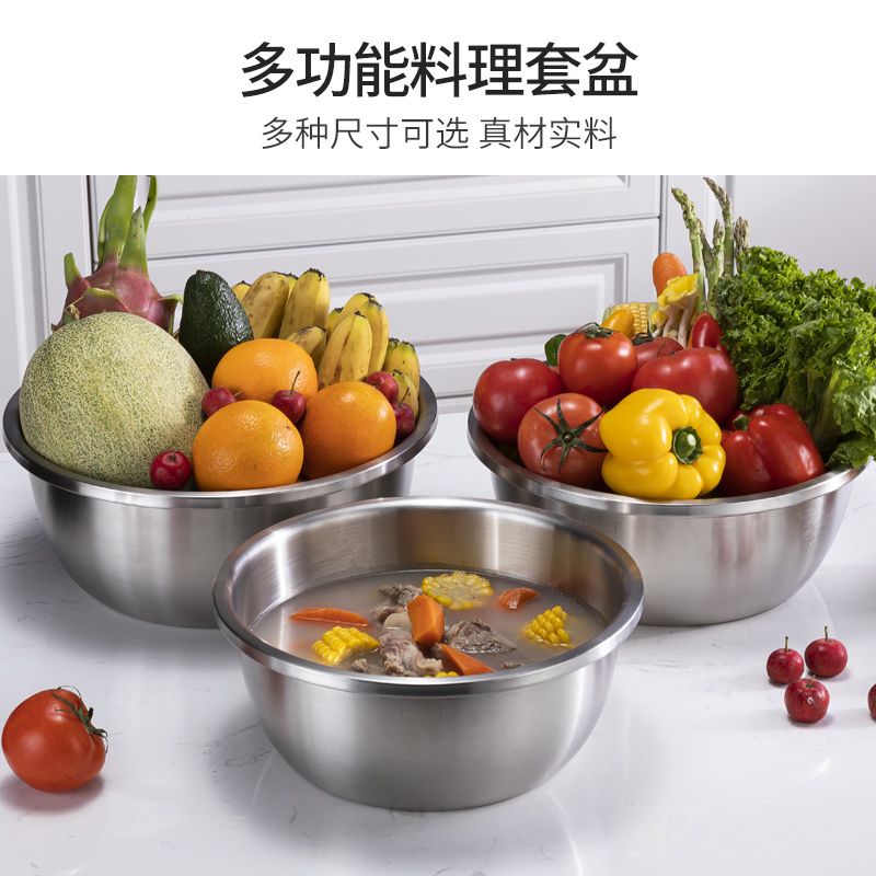 304 stainless steel basin zipped egg and face basin round home kitchen deepening thickened baked and lost cooking basin water fruit tray