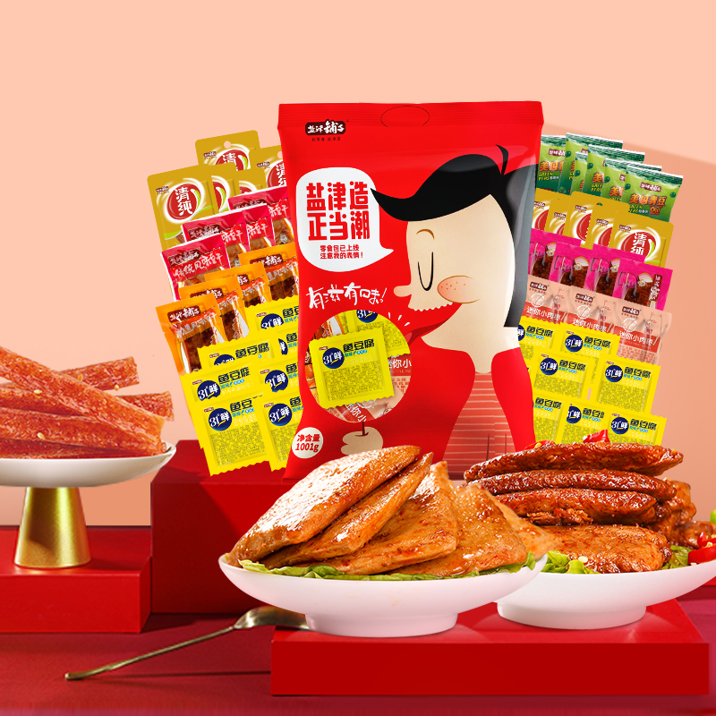 Yanjin Shop snack gift bag snack fish tofu combination A whole box of vegetarian meat and dried beans leisure food 1001g