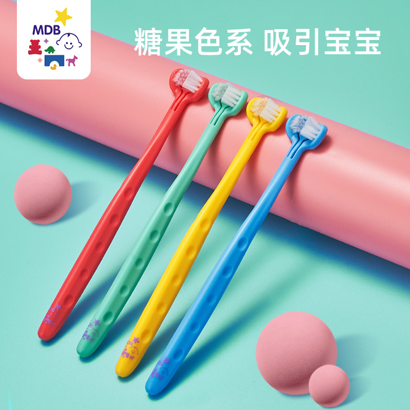 mdb children three-sided toothbrush 1-2-3-6 years old + baby baby over 3d soft hair training tooth protection milk toothbrush